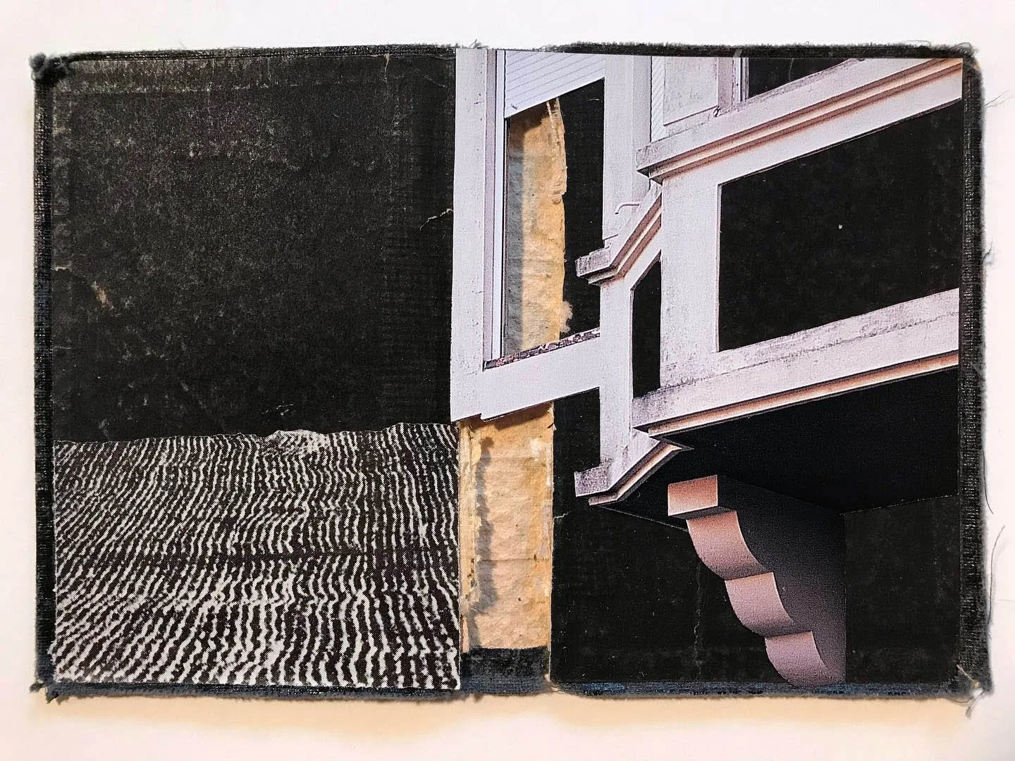 Cut and torn paper on book cover interior , 8.25” x 8.25”